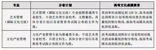 第一类:达到上述前提后,按高考文化成绩从高分到低分择优录取的专业有:艺术管理、广播电视编导、戏剧影视文学。