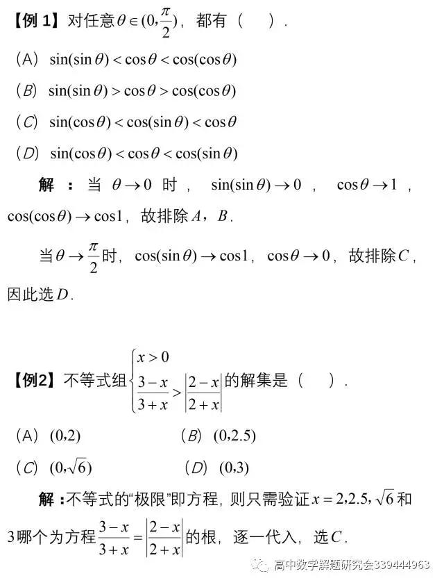 用极限法是解选择题的一种有效方法。它根据题干及选择支的特征,考虑极端情形,有助于缩小选择面,迅速找到答案。