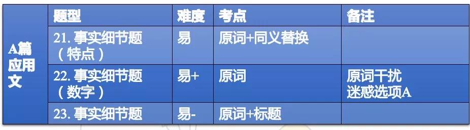 由此可见,近两年最常考的3个考点分别是:理解文中具体信息、根据所读内容作出判断和推理,以及理解主旨要义。