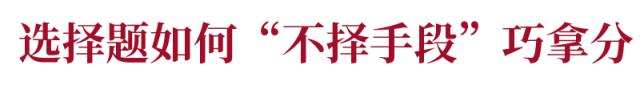 给一个东西挑毛病是远远简单于证明一个东西正确的。选择题的解题本质就是“选择”,舍弃不符合题目要求的错误答案,找到符合题意的正确结论。可通过筛除一些较易判定、不合题意的结论,缩小选择的范围,再从其余的结论中求得正确的答案。